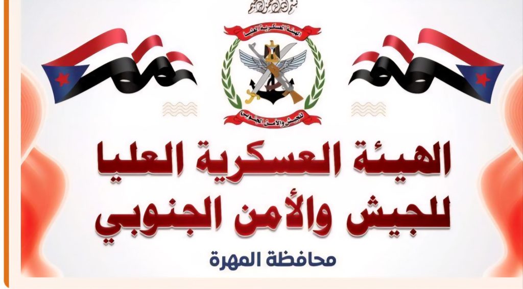 الهيئه العسكرية للجيش والأمن الجنوبي محافظة المهرة تهنئ القيادة السياسية بمناسبة الذكرى 62 لثورة الرابع عشر من أكتوبر المجيده