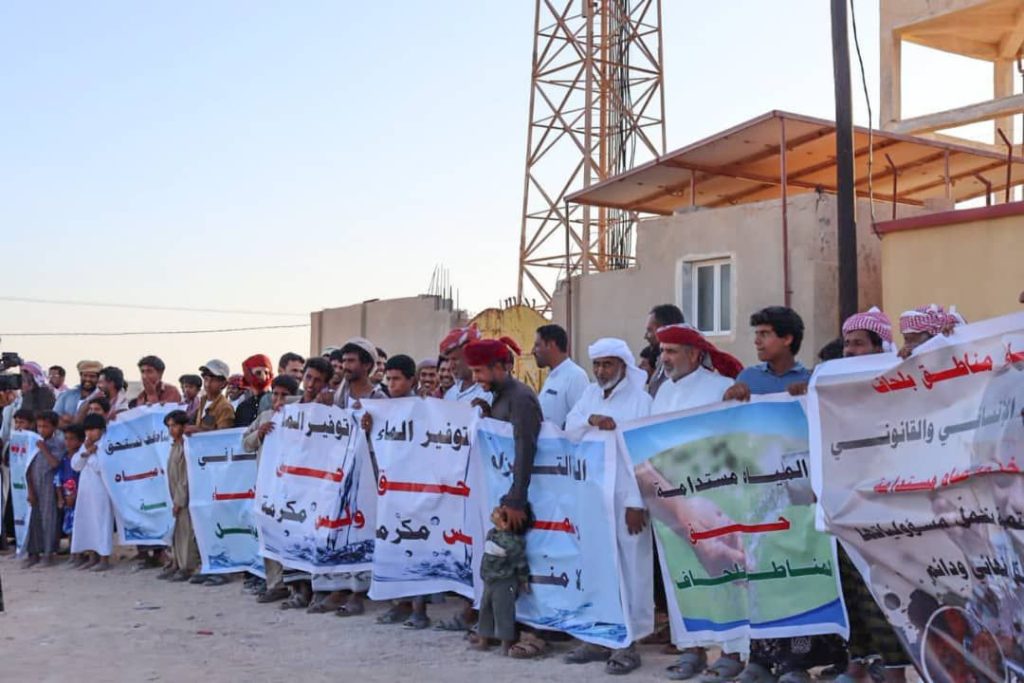 أهالي مناطق بلحاف ينظمون وقفة احتجاجية سلمية للمطالبة بحلّ أزمة المياه وتنفيذ مشروع مستدام
