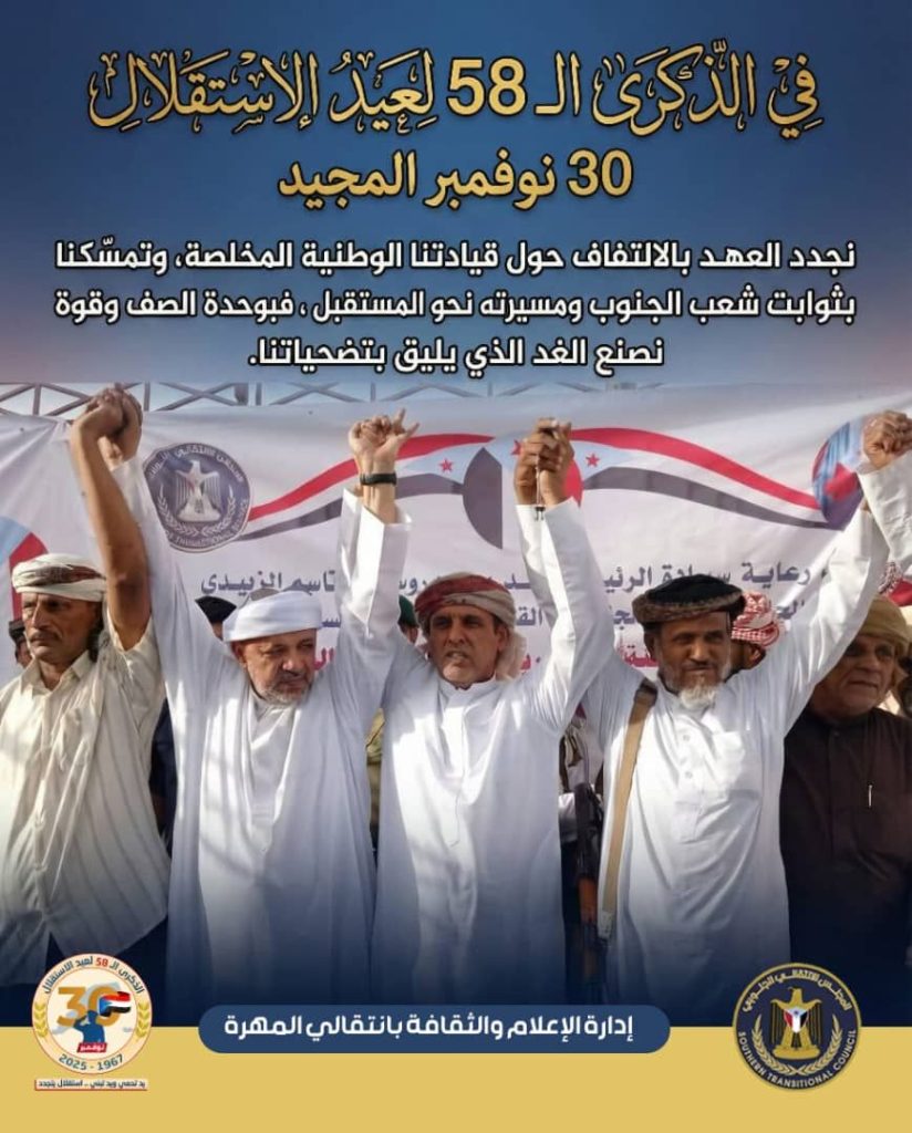 كما جدد أبناء المهرة، عبر الشيخ راجح، ثقتهم بقيادة الرئيس الزُبيدي، وتطلّعهم إلى قيام دولة جنوبية فدرالية عادلة تكفل الحقوق وتُرسّخ قيم الشراكة دون تهميش أو إقصاء، وتضمن الأمن والاستقرار وسيادة القانون.