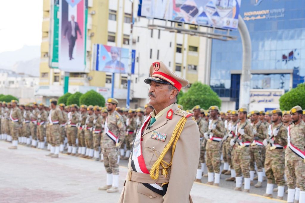حضر العرض العسكري الأمين العام للأمانة العامة لهيئة رئاسة المجلس الانتقالي الأستاذ عبدالرحمن شاهر، ووزير الدفاع الفريق الركن محسن الداعري، وعضو هيئة الرئاسة ورئيس هيئة التشاور والمصالحة المساندة لمجلس القيادة، واللواء هيثم قاسم، عضو هيئة رئاسة المجلس الانتقالي، رئيس اللجنة العسكرية والأمنية العليا، واللواء صالح علي حسن رئيس العمليات المشتركة، واللواء علي البيشي قائد القوات البرية الجنوببة، إلى جانب عدد من أعضاء هيئة الرئاسة والوزراء في الحكومة، وقيادات عسكرية وأمنية وقيادات المجلس الانتقالي الجنوبي ومؤسسات الدولة.