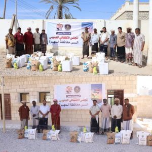 انتقالي المهرة يدشّن توزيع السلال الغذائية للأسر الأشد احتياجًا في مديرتي سيحوت والمسيلة